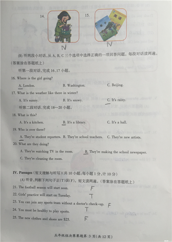 2017年全国小学英语竞赛五年级决赛试题(3)