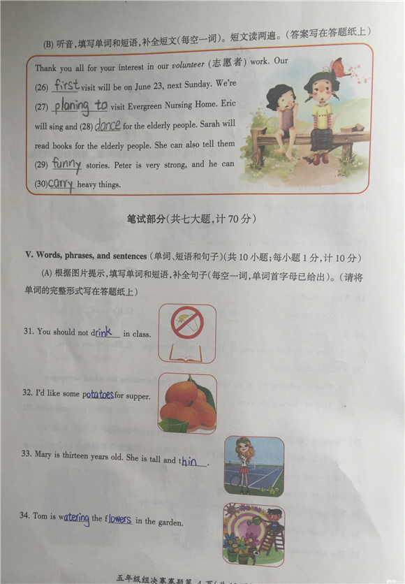 2017年全国小学英语竞赛五年级决赛试题(4)
