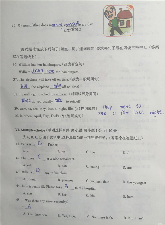 2017年全国小学英语竞赛五年级决赛试题(5)