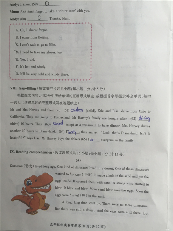 2017年全国小学英语竞赛五年级决赛试题(8)