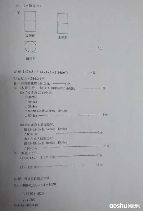 2014年玄武区初一(上)数学期末调研试卷答案(2)