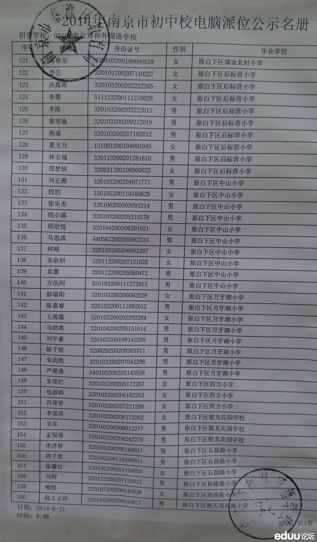 2014年南京郑和外国语摇号名单(共160人)(4) 家长帮社区 2014-06-21 16:08:50 【查看原帖并参与讨论:【e度首发】2014郑外摇号名单(共160人)】 首页 上一页 下一页 尾页