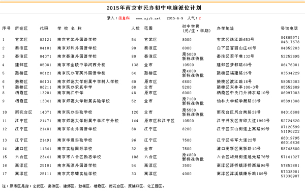 【官方】2015年南京市民办初中小升初电脑派位计划