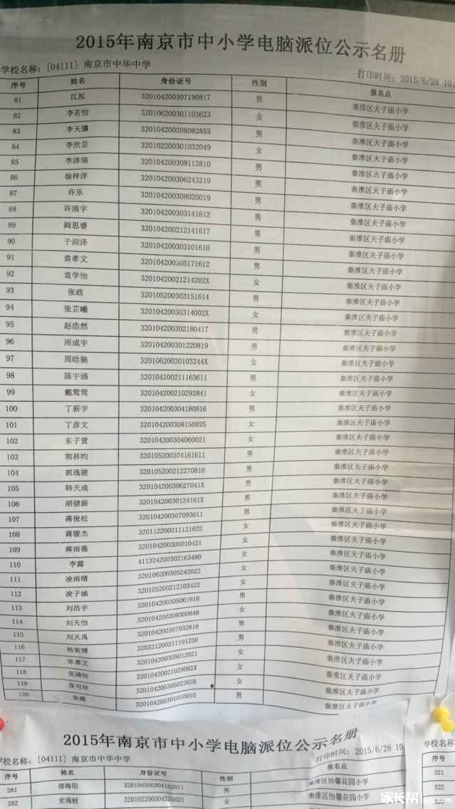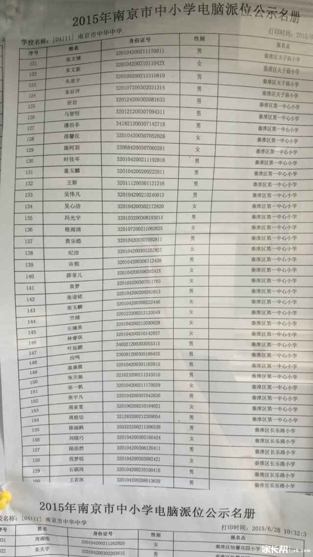 南京中华中学2015年电脑派位录取名单(2)