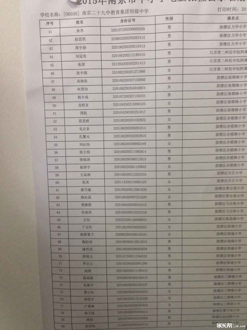南京二十九中2015小升初电脑派位录取名单(2)