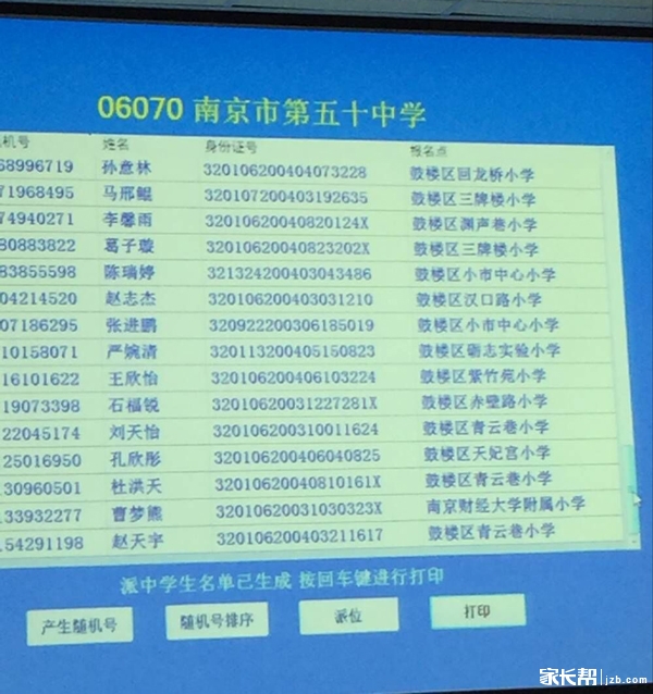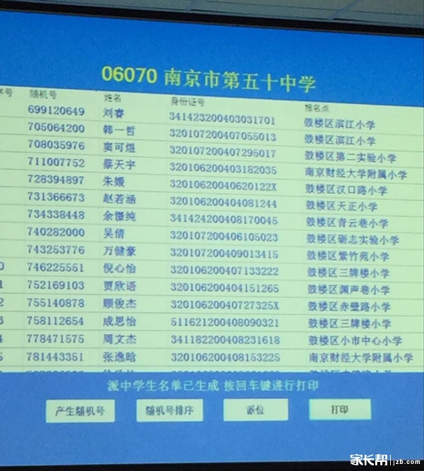 2016年南京五十中小升初摇号名单公示
