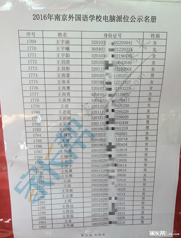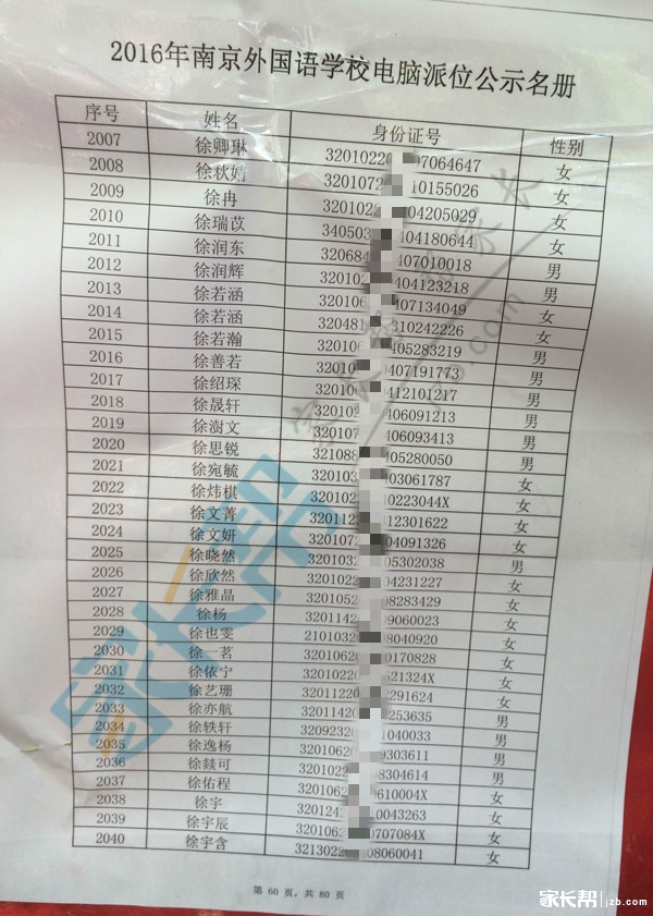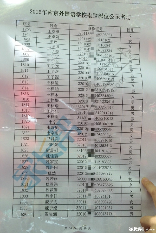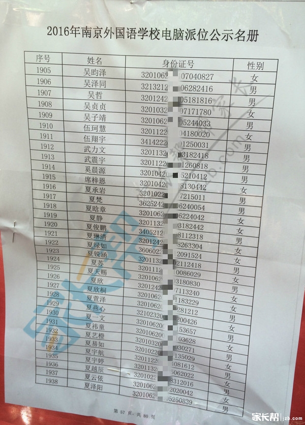2016年南京外国语小升初摇号名单公示(6)