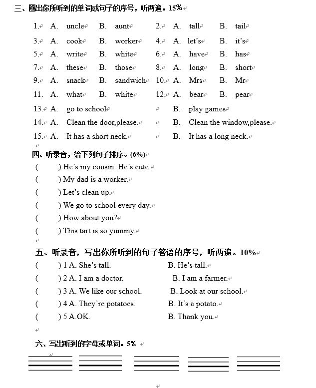 2019年南京市小学二年级英语期末模拟卷一(图片版)(2)