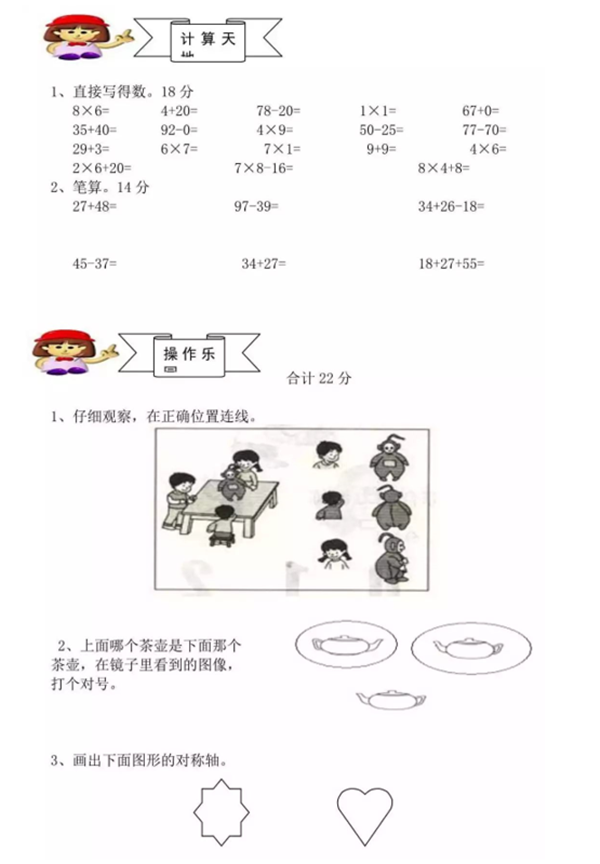 2019年南京市小学二年级数学期末模拟卷一(图片版)(2)