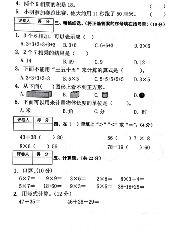 2019年南京市小学二年级数学期末模拟卷二(图片版)(2)