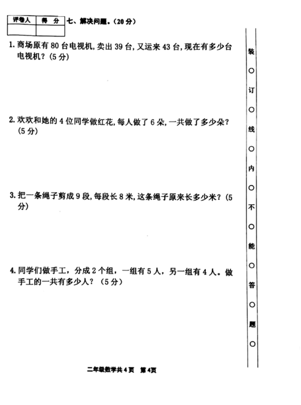 2019年南京市小学二年级数学期末模拟卷二(图片版)(4)