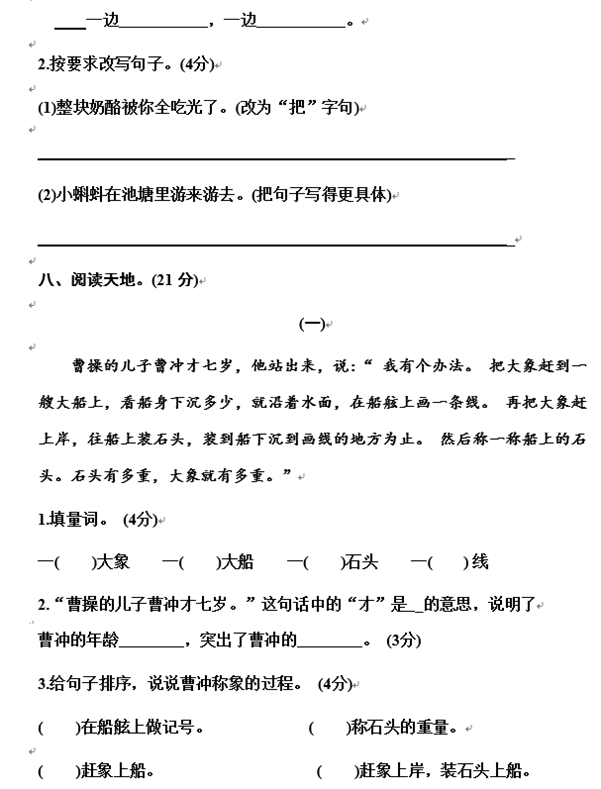 2019年南京市小学二年级语文期末模拟卷二(图片版)(3)