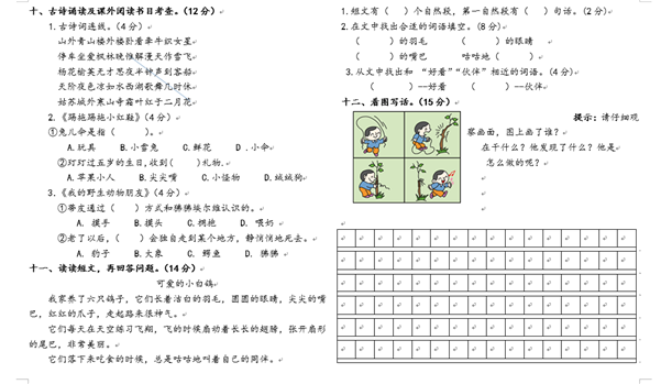 2019年南京市小学二年级语文期末模拟卷六(图片版)(2)