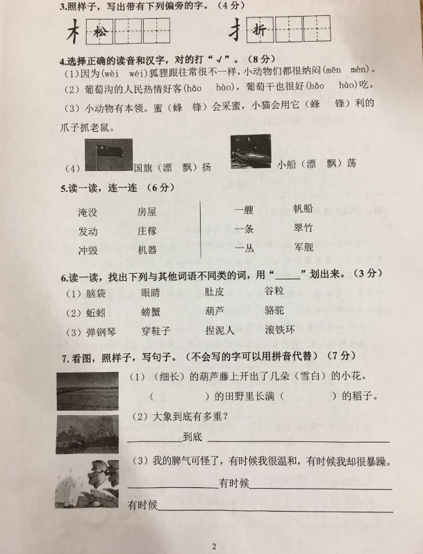 2019年南京市栖霞区小学二年级语文期末试卷(图片版)(2)