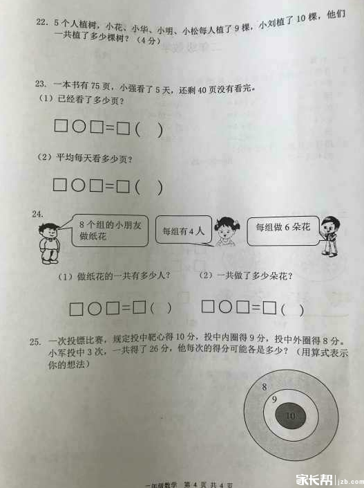 2019年南京市浦口区小学二年级数学期末卷(图片版)(4)