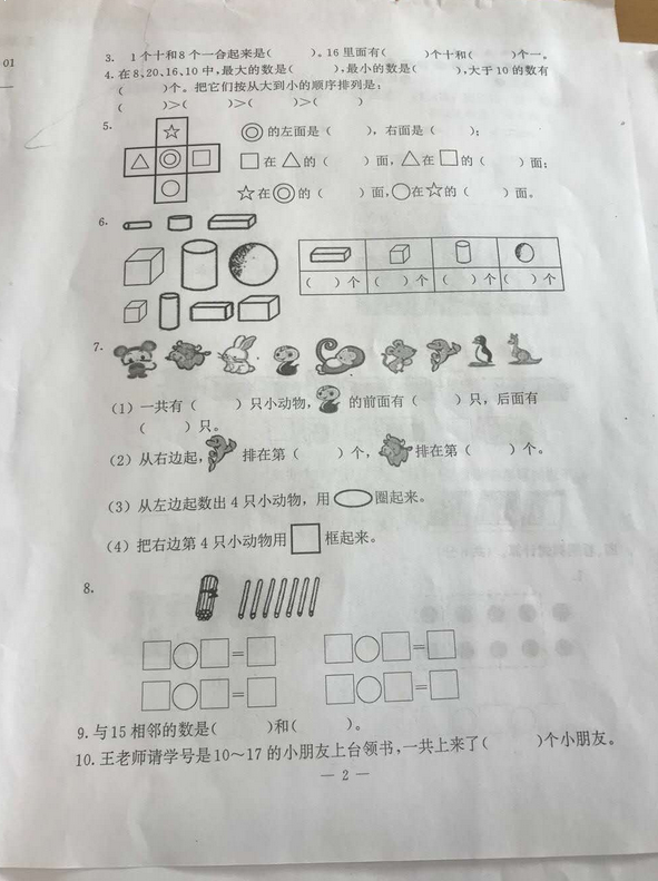 2019年南京市浦江宁区小学一年级数学期末卷(图片版)(2)