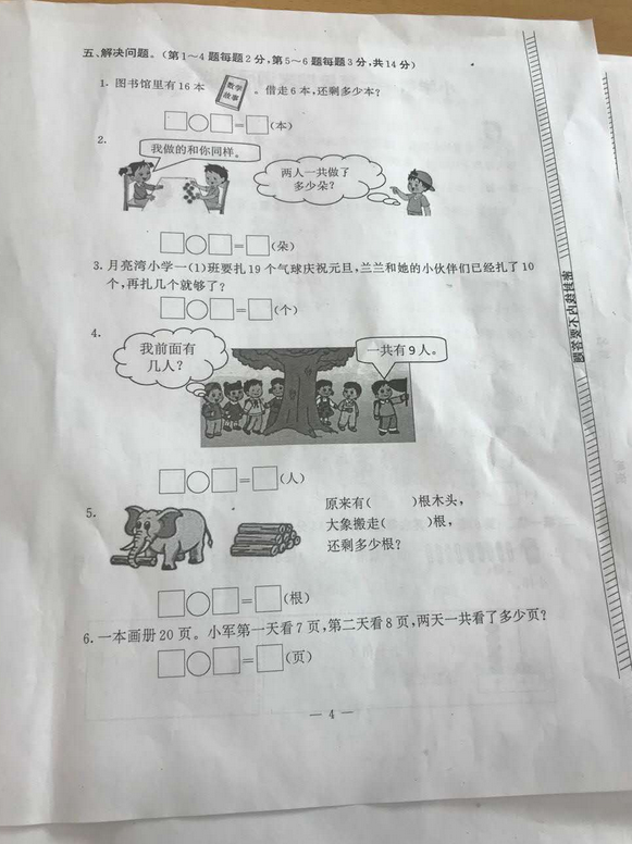 2019年南京市浦江宁区小学一年级数学期末卷(图片版)(3)