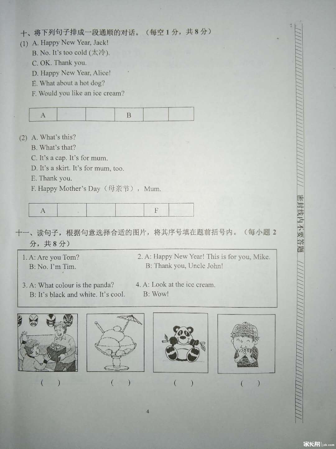 2019年南京市江宁区小学三年级英语期末卷(图片版)(4)