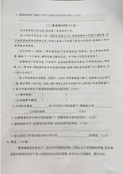 2019年南京市鼓楼区小学三年级语文期末卷(图片版)(2)