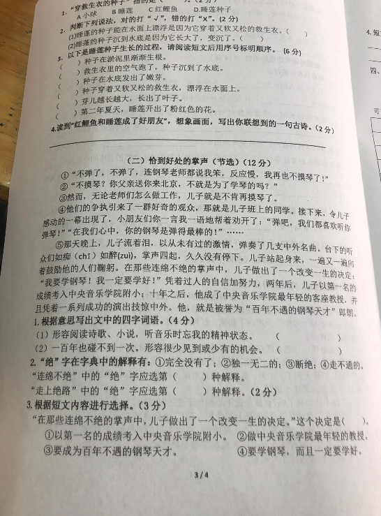 2019年南京市建邺区小学三年级语文期末卷(图片版)(3)