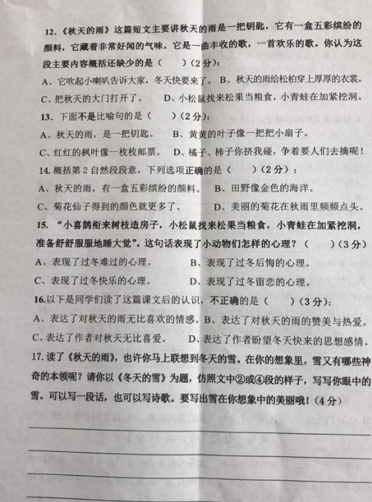 2019年南京市栖霞区小学三年级语文期末卷(图片版)(5)