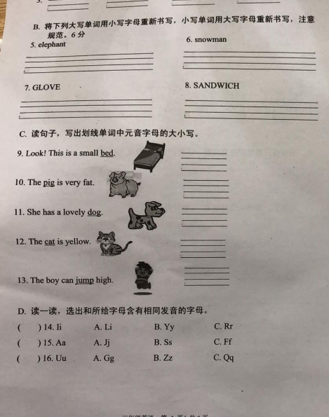 2019年南京市栖霞区小学三年级英语期末卷(图片版)(4)