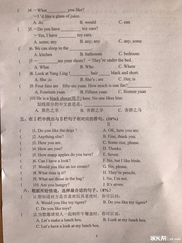 2019年南京市鼓楼区小学四年级英语期末卷(图片版)(4)
