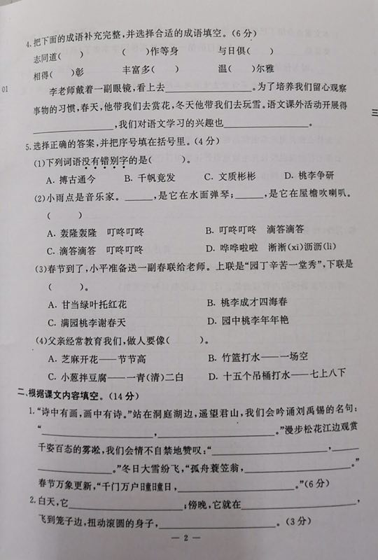 2019年南京市鼓楼区小学四年级语文期末卷(图片版)(2)