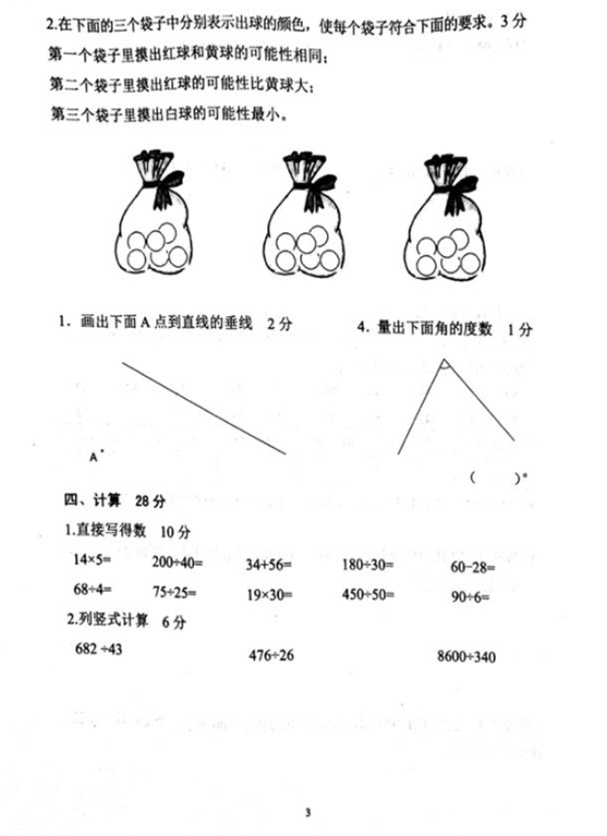 2019年南京市栖霞区小学四年级数学期末卷(图片版)(3)