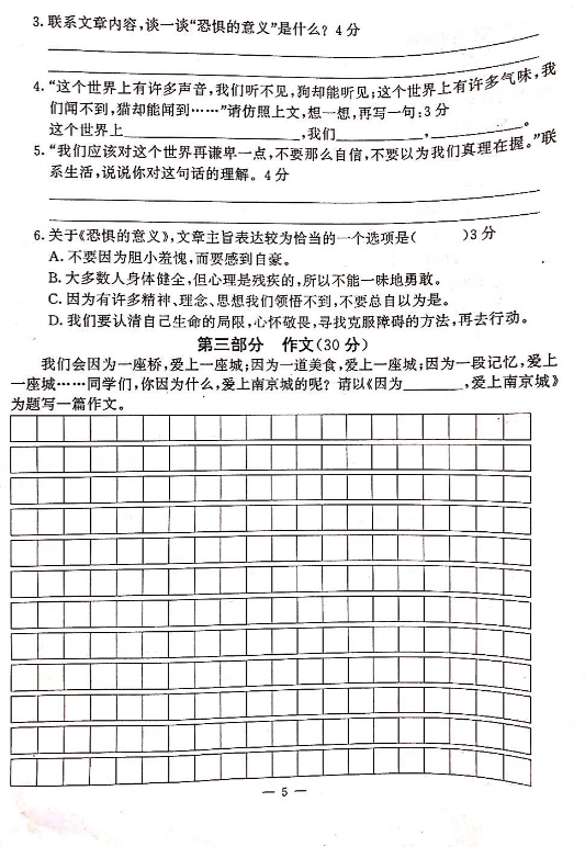 2019年南京市鼓楼区小学五年级语文期末卷(图片版)(5)
