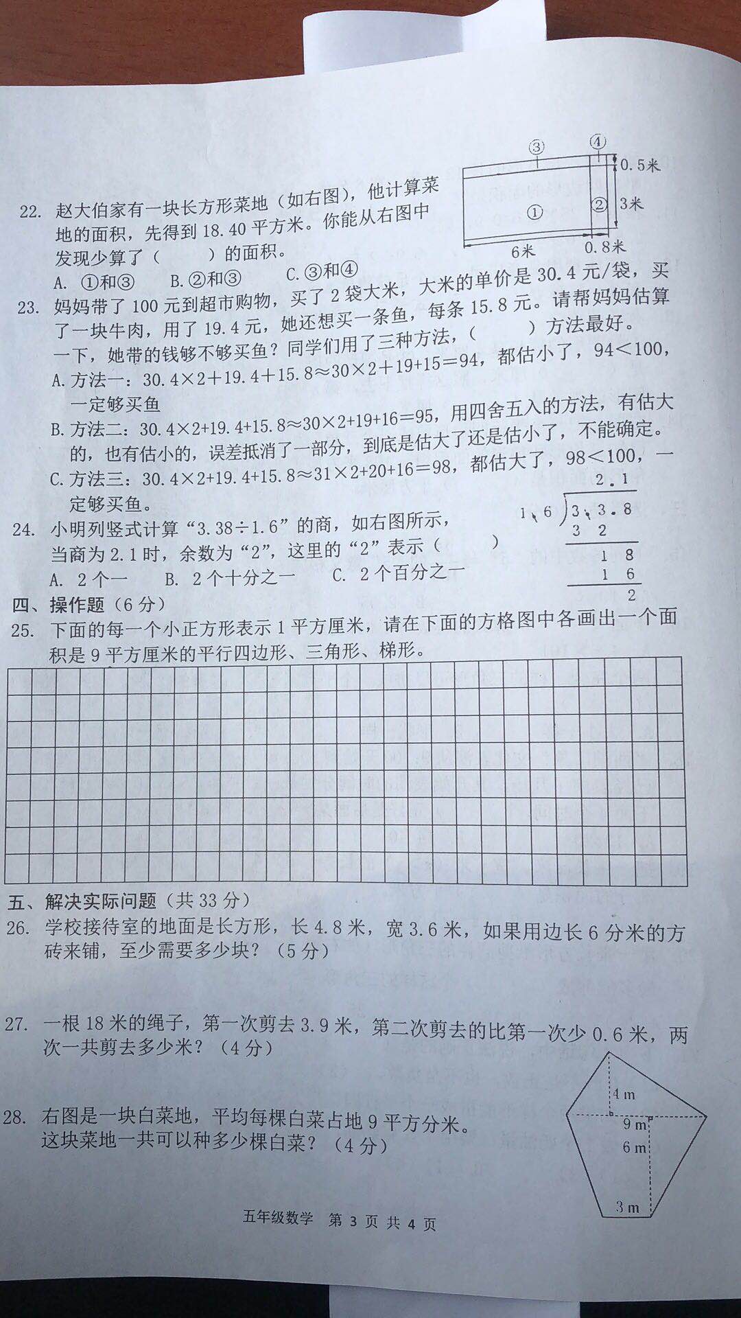 2019年南京市浦口区小学五年级数学期末卷(图片版)(3)
