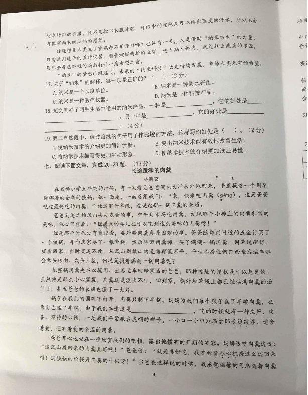 2019年南京市玄武区小学五年级语文期末卷(图片版)(3)