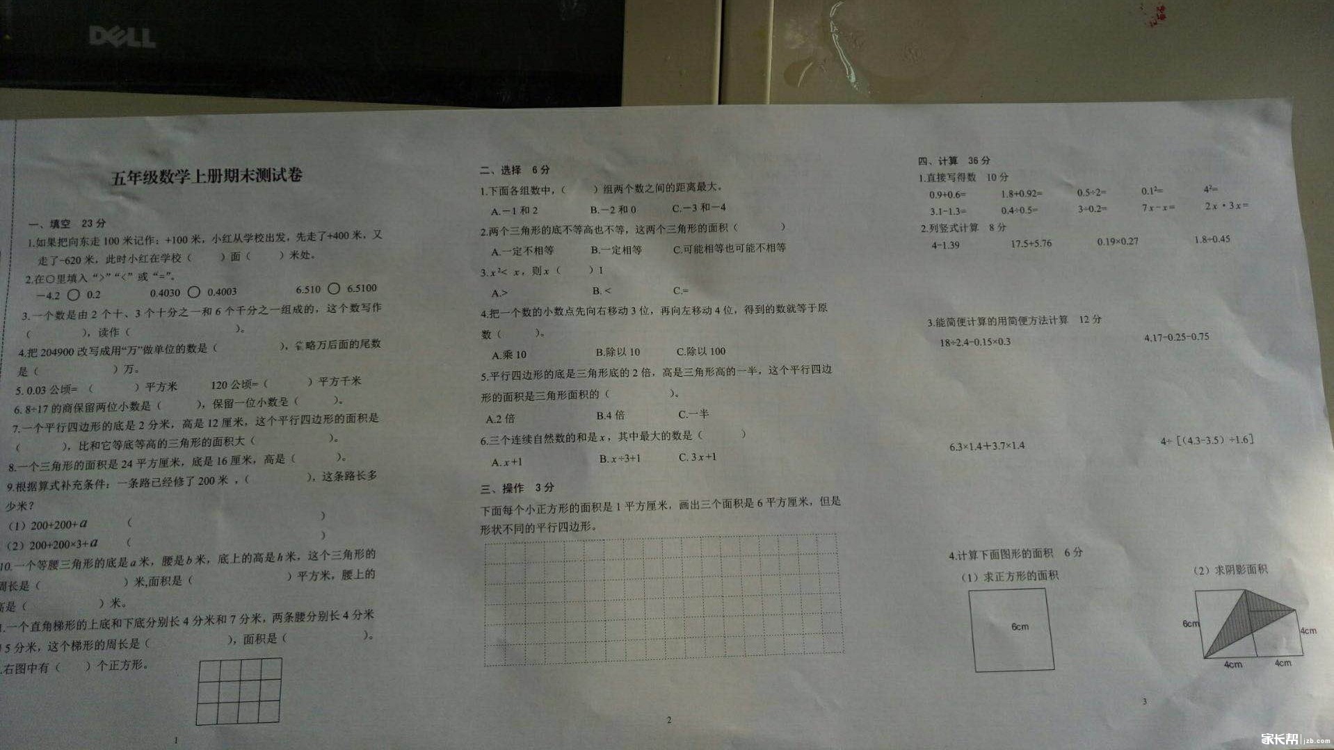 2019年栖霞市六合区小学五年级数学期末卷(图片版)