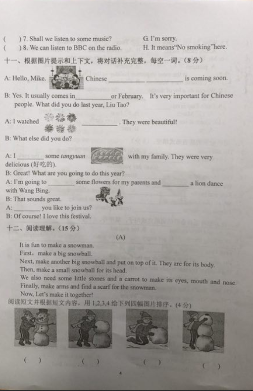 2019年南京市鼓楼区小学六年级英语期末卷(图片版)(4)