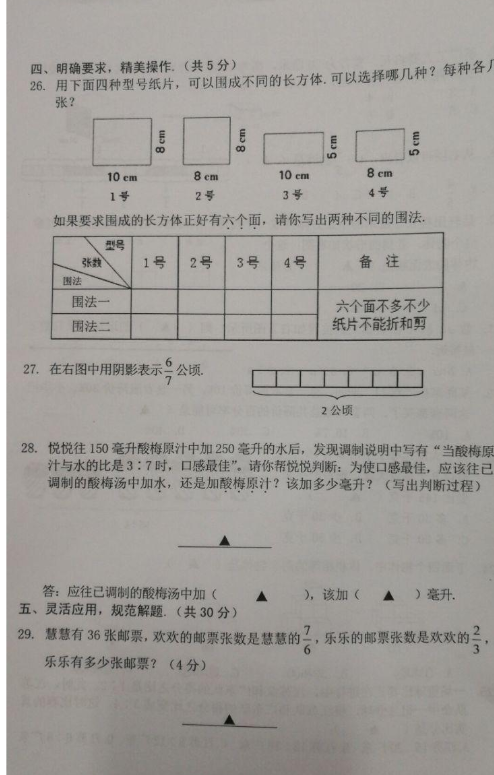 2019年南京市浦口区小学六年级数学期末卷(图片版)(4)
