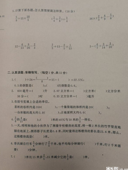 2019年南京市江宁区小学六年级数学期末卷(图片版)(2)