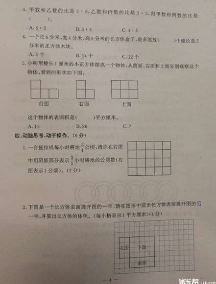 2019年南京市江宁区小学六年级数学期末卷(图片版)(4)