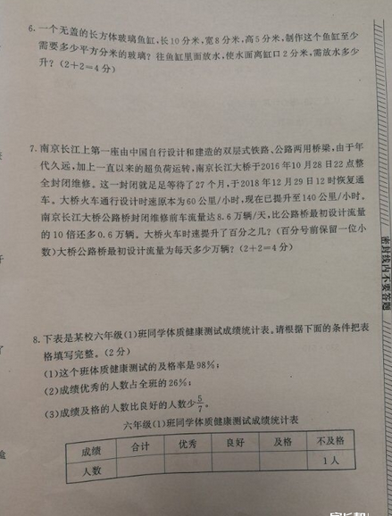 2019年南京市江宁区小学六年级数学期末卷(图片版)(6)