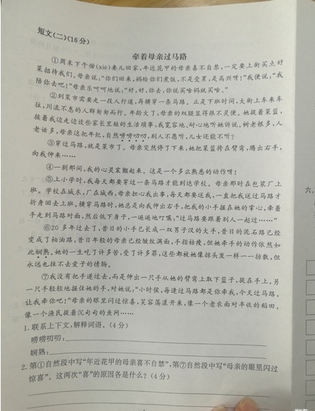 2019年南京市江宁区小学六年级语文期末卷(图片版)(4)