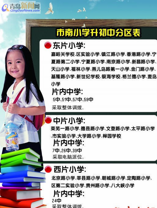 根据市南区2011年义务教育阶段学校毕业招生入学工作意见,2011年,区教育局将根据实际情况,对2011年各小学的学区进行局部调整。原则上学校学区内新增加的楼号或路段,皆属该校招生范围。为加强招生管理,2011年小学一年级招生继续实行网络化管理,学校的录取工作继续通过小学一年级报名系统完成,所有新生电子学籍继续由区教育局根据报名系统统一创建。市南区今年仍将严格控制班额,小学每班不超过45人。