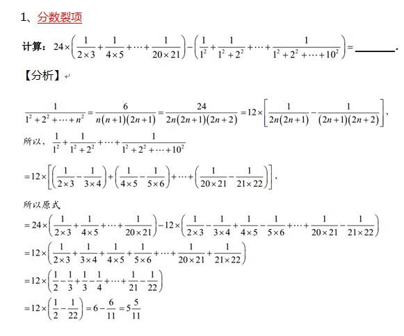2012年希望杯最后冲刺 计算考点分析