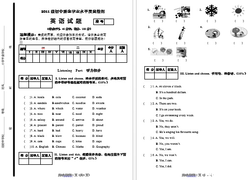 青岛59中2011年分班考试英语听力