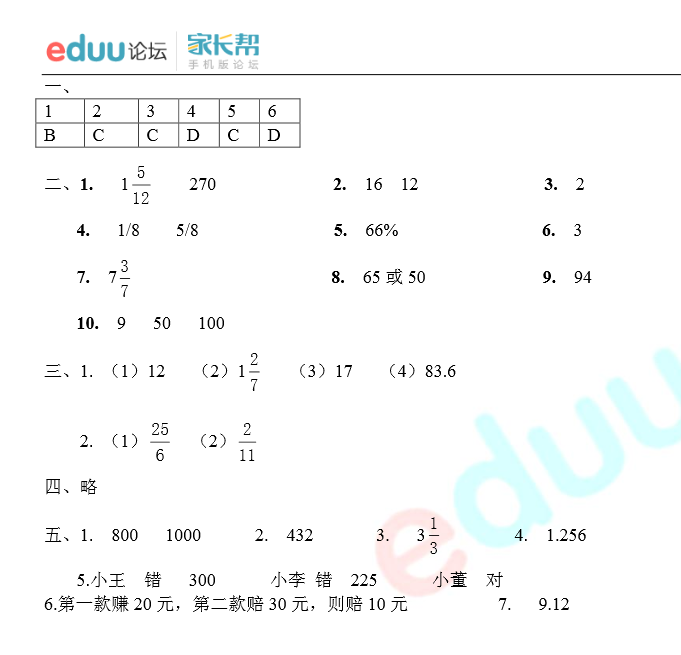 【查看原帖并参与讨论: 2014青岛实验初级(育才)中学分班考试数学试卷(答案?】