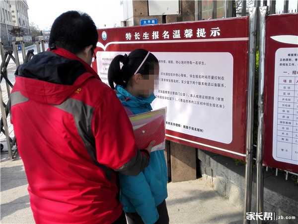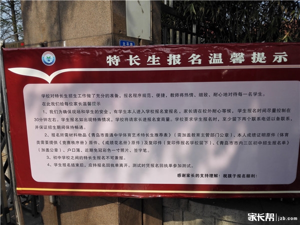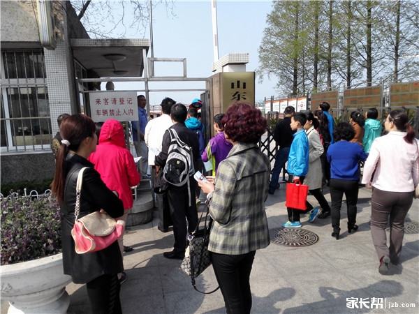 家长帮小编8点10分来到青岛实验初中,特长生报名还未开始,早来的家长和同学都在门口等待。