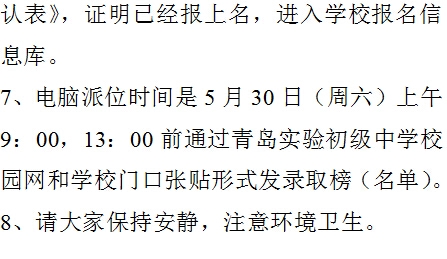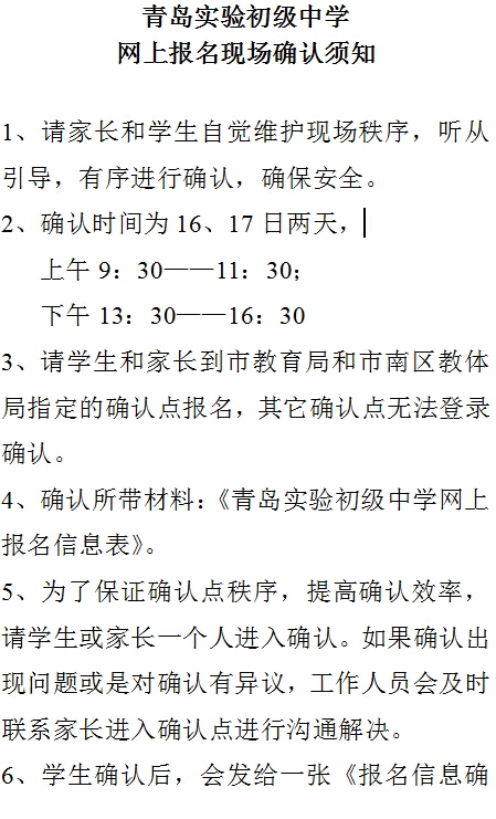 2015年青岛实验初级中学小升初网上报名今天就截止了,将在16-17日,进行青岛实验初级中学2015小升初网上报名现场确认,下面是青岛实验初级中学发布的现场确认须知。