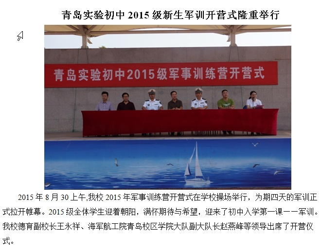 青岛实验初级中学新初一军训开营现场直播 青岛奥数网 2015-09-01 10:57:44 青岛实验初级中学2015级新初一入学军训于今天(9月1日)开始了,青岛实验初级中学新初一军训开幕式现场情况如下。 首页 上一页 下一页 尾页