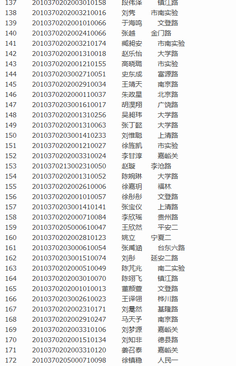 青岛实验初级中学2016小升初图表版派位录取名单(3)