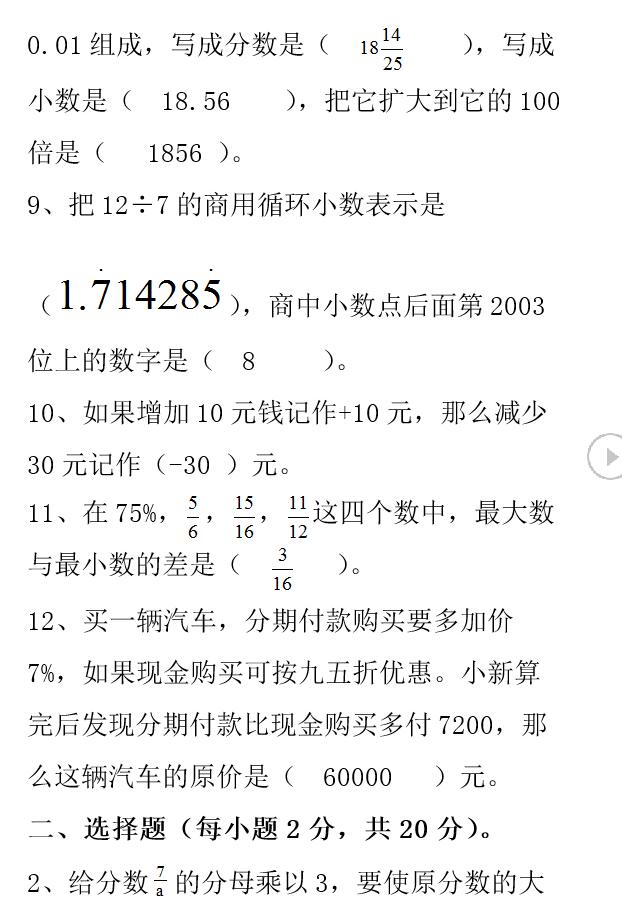 2017青岛小升初复习名校数学模拟试卷答案(2)
