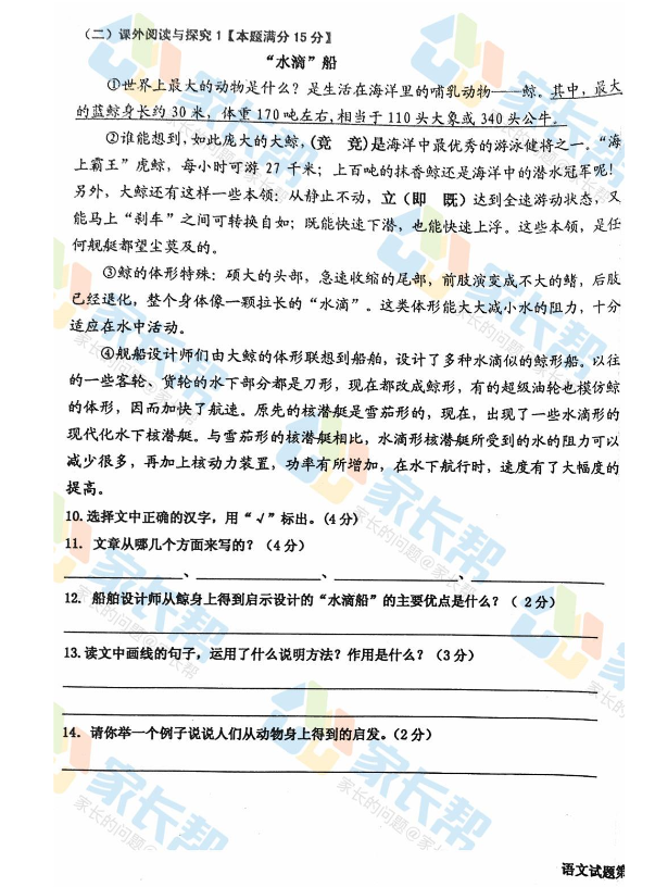 2017年青岛市北、李沧区小升初分班考统考语文试卷(3)