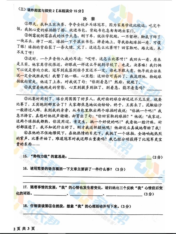 2017年青岛市北、李沧区小升初分班考统考语文试卷(4)